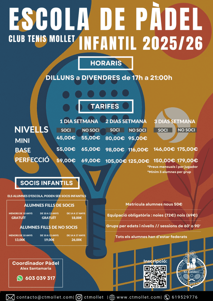L’Escola de pàdel del Club Tenis Mollet es va crear l’any 2010 amb l’objectiu de donar a conèixer el pàdel entre els nens i nenes de Mollet i fomentar la seva pràctica esportiva.